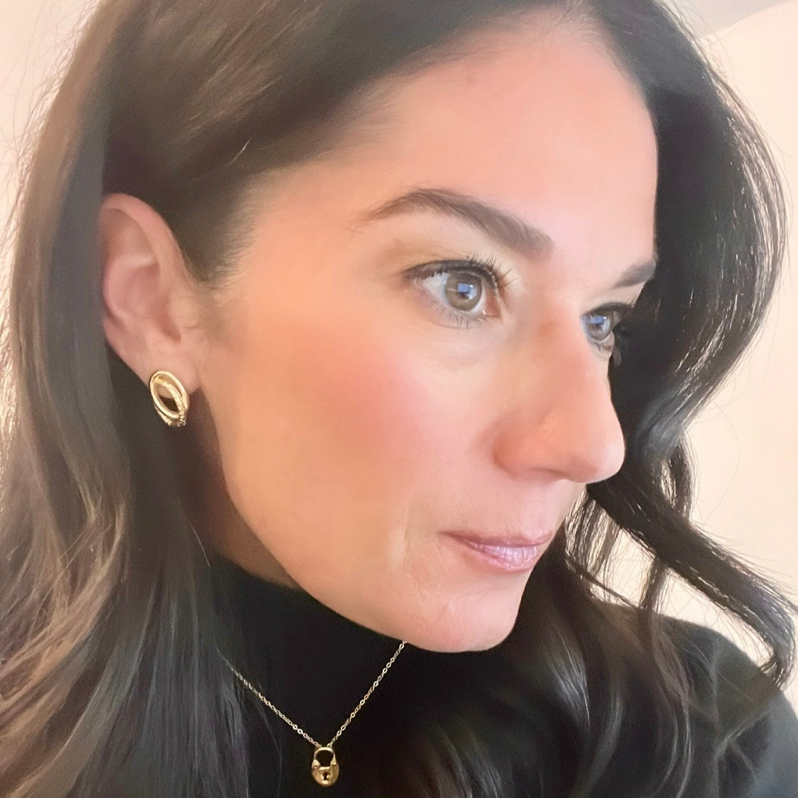 - Oval interlocking links plated in 14K gold