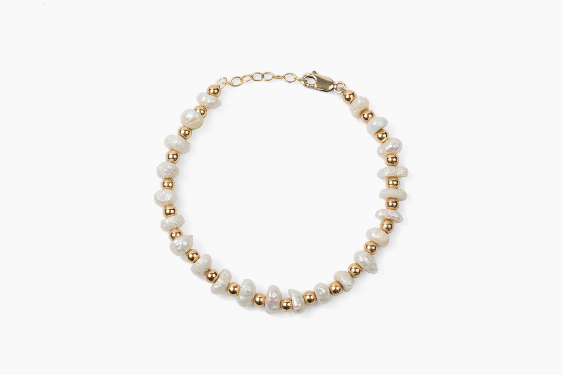 Inspired by a vintage strand of pearls with the same combination of beading updated for a delicate statement today.
